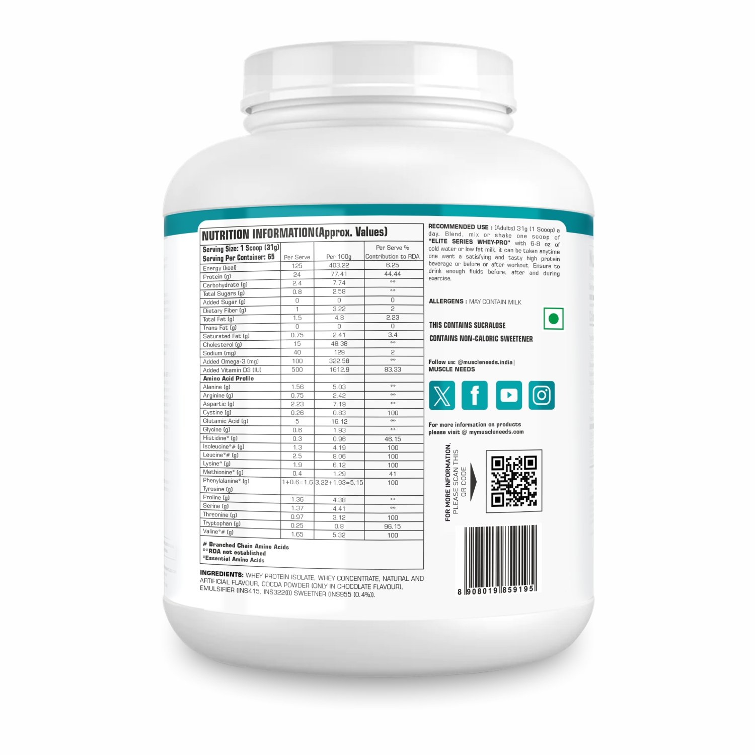 Unlock your peak performance with Muscle Needs’ Elite Series Whey-Pro, the ultimate choice for advanced muscle building. Formulated to provide superior nutrition, Elite Series Whey-Pro is enriched with added Omega-3 and Vitamin D3, ensuring comprehensive support for your fitness journey.